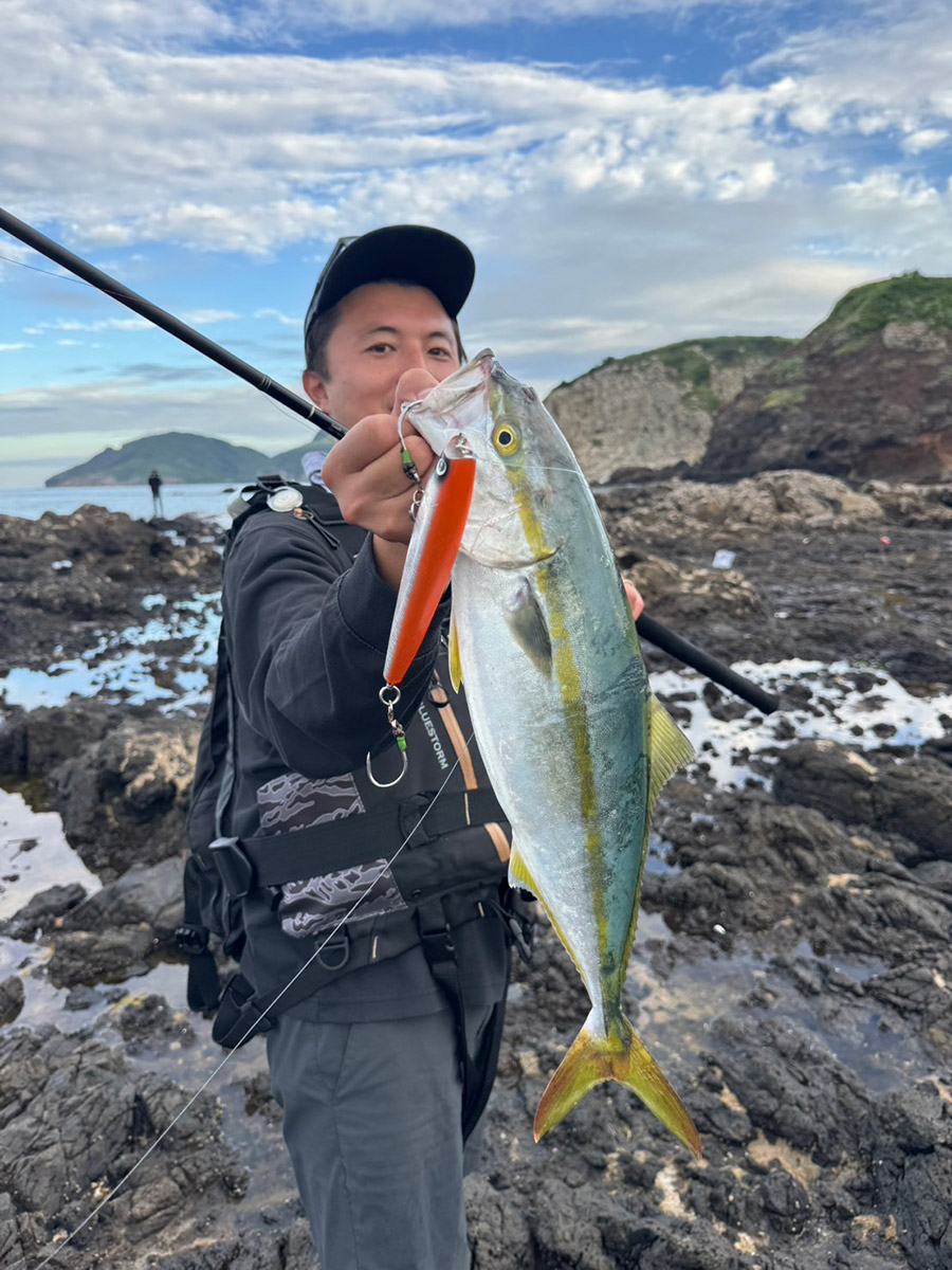 天気は晴れ、潮は長潮とやや難しい状況でしたが、青物の回遊もあり、狙いのヒラマサをしっかりキャッチ!