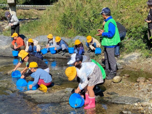 この学習会では、魚についての知識を深めてもらうとともに、「ゴミは必ず持ち帰る」という環境保全のための基本的なマナー、そして安全な川での遊び方や、水辺の危険性についても説明させていただきました。