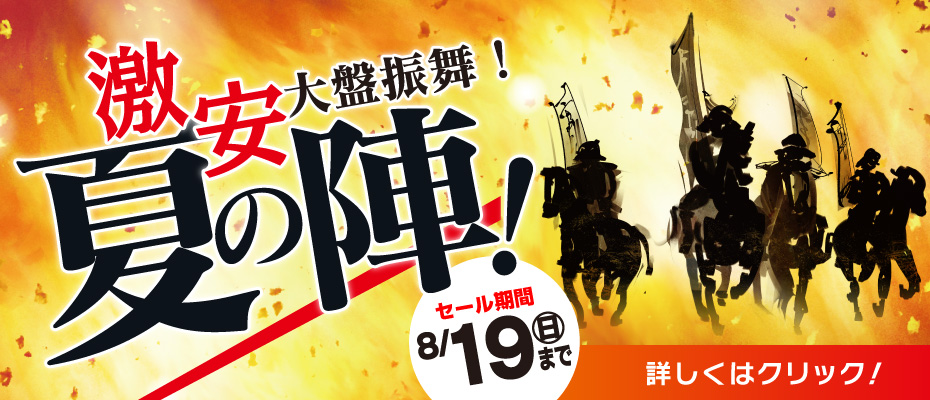 8月19日(日)まで、激安 大盤振舞!夏の陣開催!<終了しました>
