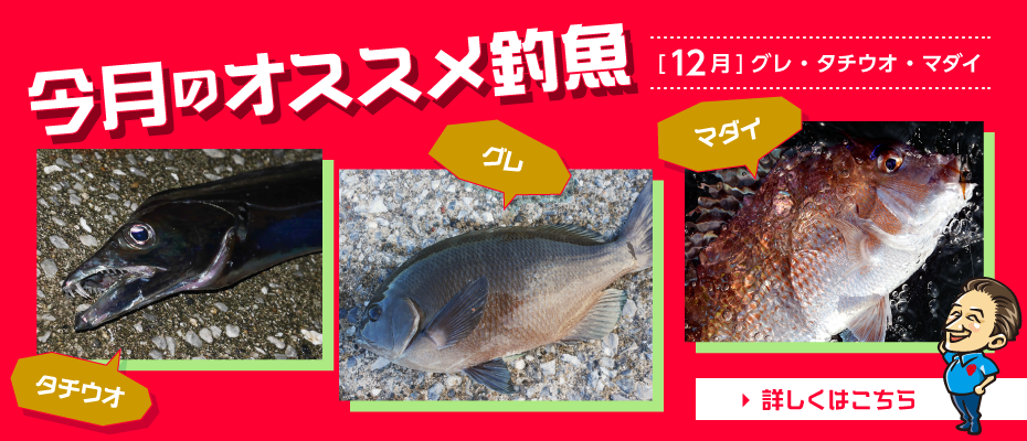 12月のオススメ釣魚はタチウオ、グレ、メバルです。