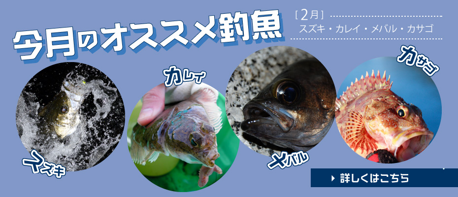 2月のオススメ釣魚はスズキ・カレイ・メバル・カサゴです。