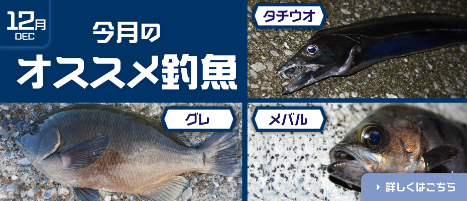 12月のオススメ釣魚はタチウオ、グレ、メバルです。