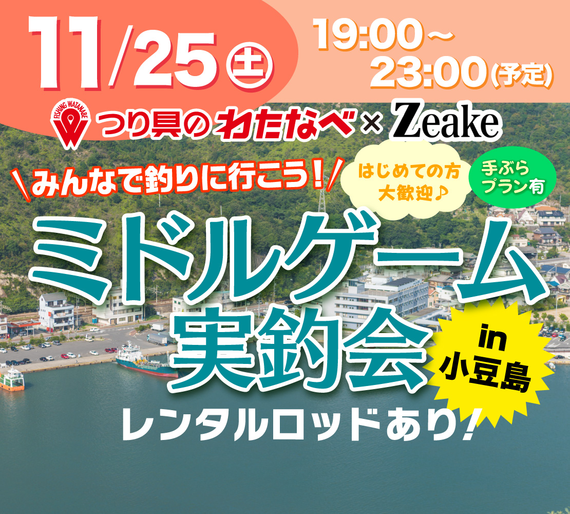 | イベント名 | つり具のわたなべ × Zeake みんなで釣りに行こう!ロックフィッシュ実釣会 in 小豆島 |