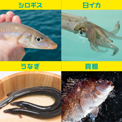 7月のオススメ釣魚はシロギス、白イカ、うなぎ、真鯛です。