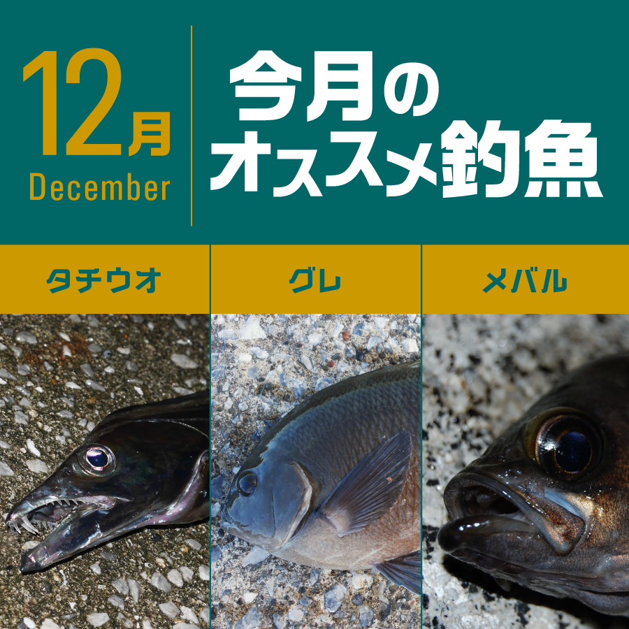 12月のオススメ釣魚はタチウオ、グレ、メバルです。