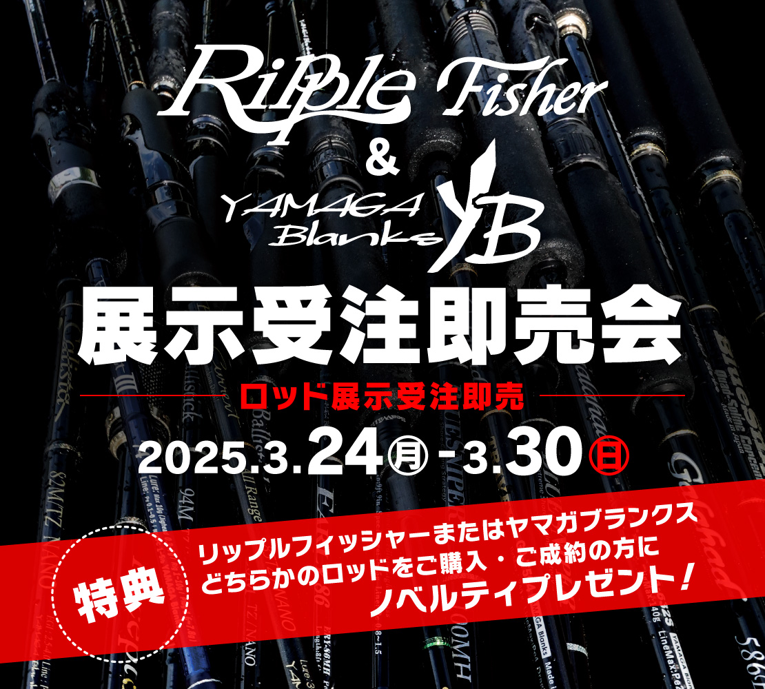 3月24日(月)~30日(日)まで「リップルフィッシャー&ヤマガブランクス展示受注即売会」開催!