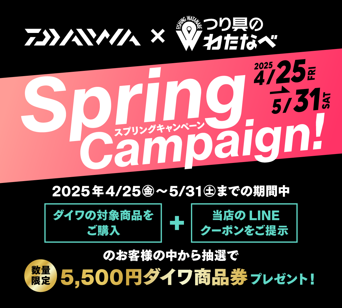 4月25日(金)~5月31日(土)まで「DAIWA × つり具のわたなべ スプリングキャンペーン」開催!