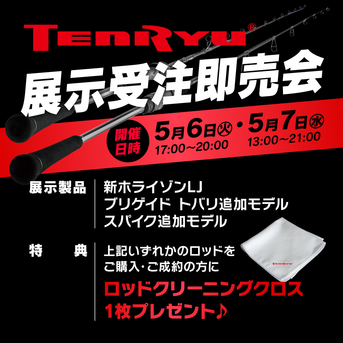 ロッドメーカー「TENRYU-天龍-」展示受注即売会開催!